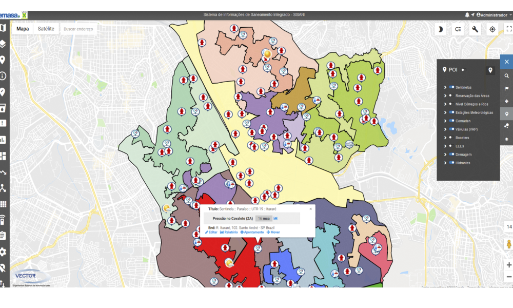 - Plataforma WEB suportada em mapa digital georreferenciado (base Google Maps);